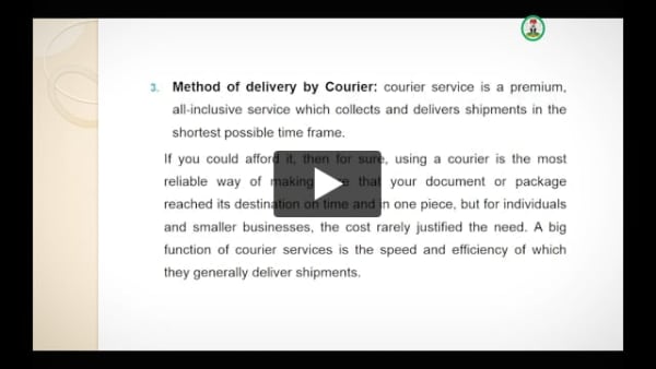 - Methods of mail delivery: i. by post ii. by hand iii. by e-mail/fax iv. by courier - Procedures for Read More >>